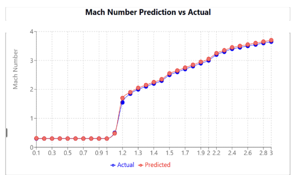- The plot provides the Actual vs Predicted results for Mach Number.