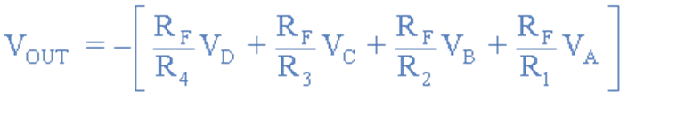 In general the Output voltage of an inverting summing amplifier is given by