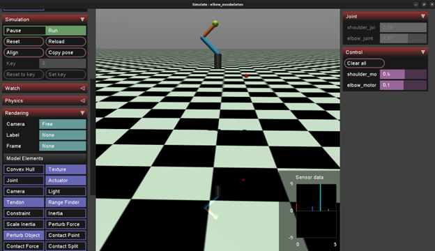 Created a realistic exoskeleton simulation in MuJoCo