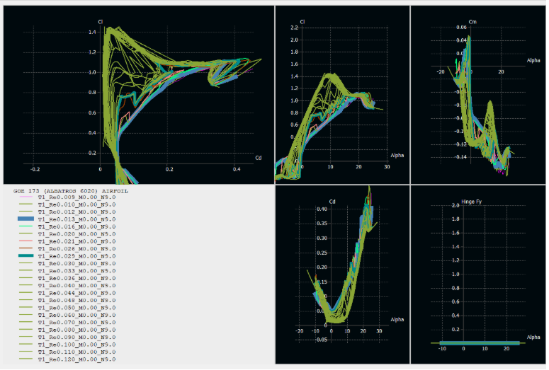 The plotted airfoils above were imported to XFLR5 in Direct Foil Analysis.